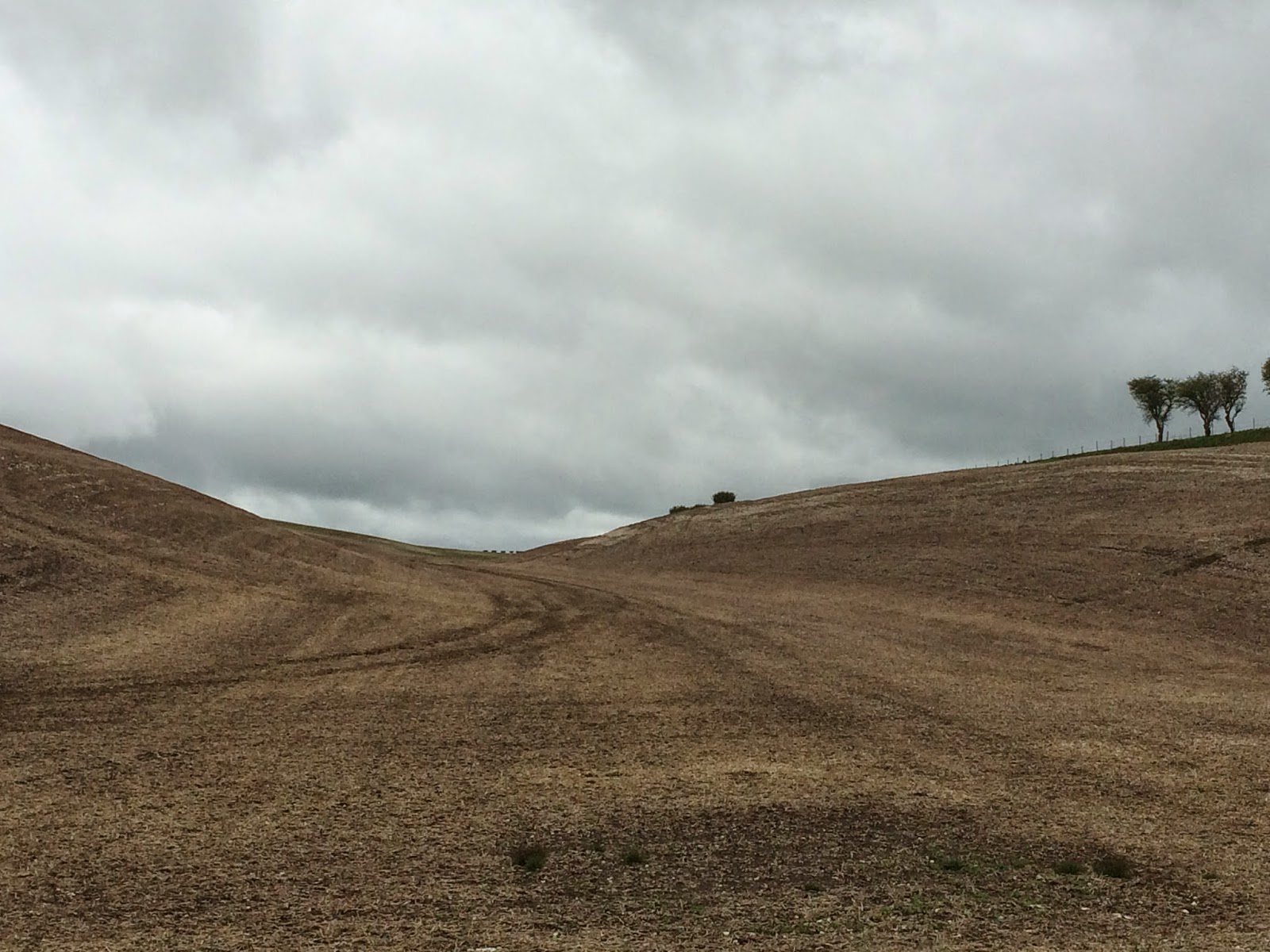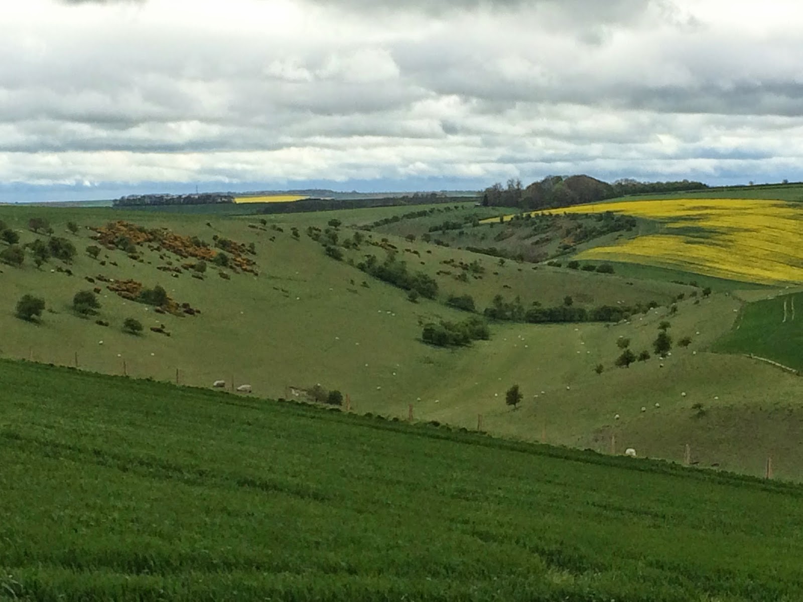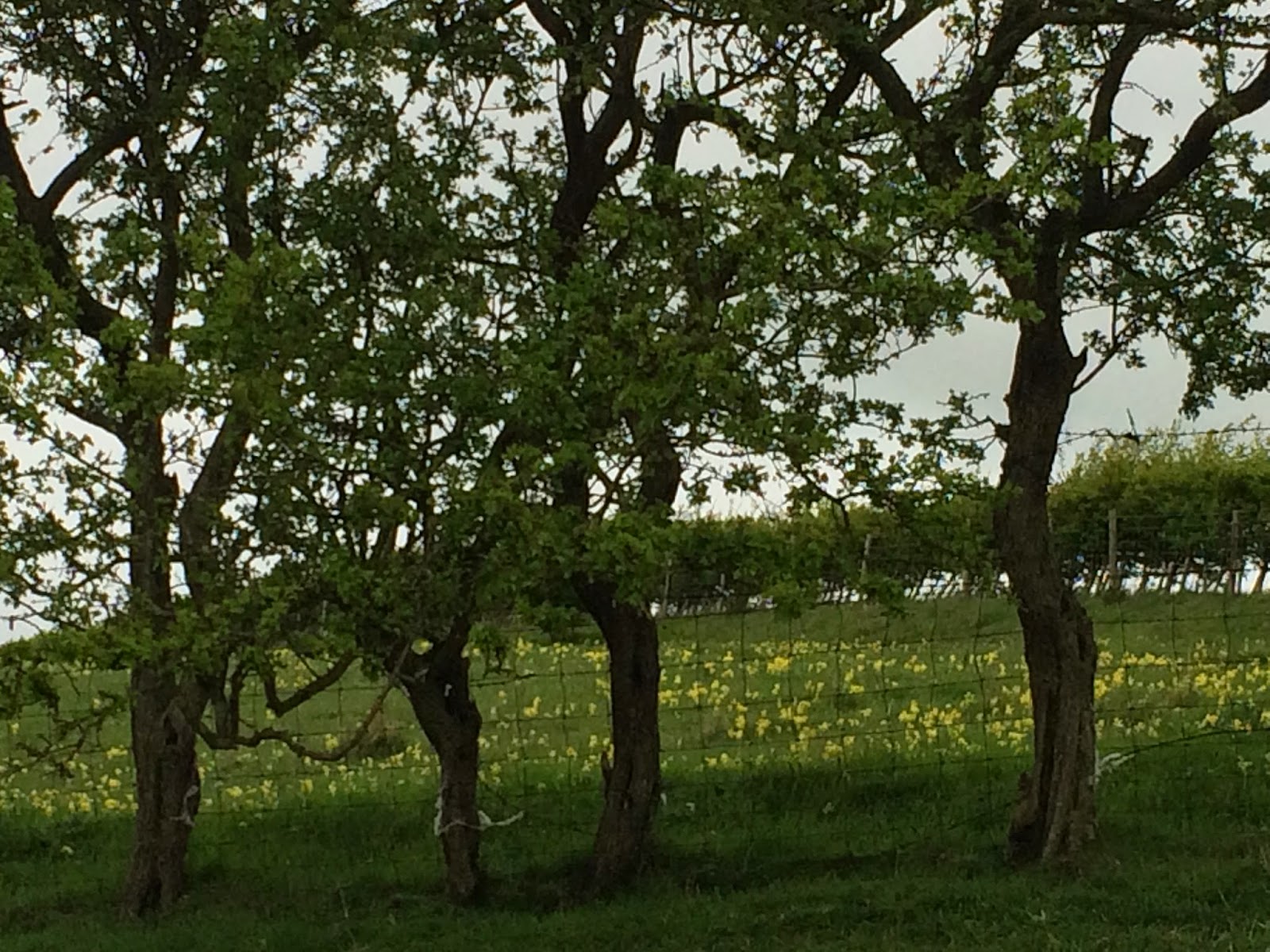 The first few miles were grey, wet and windy. The path went along one field edge after another. But after a while we found ourselves in a strange landscape which felt like it was painted by David Hockney.