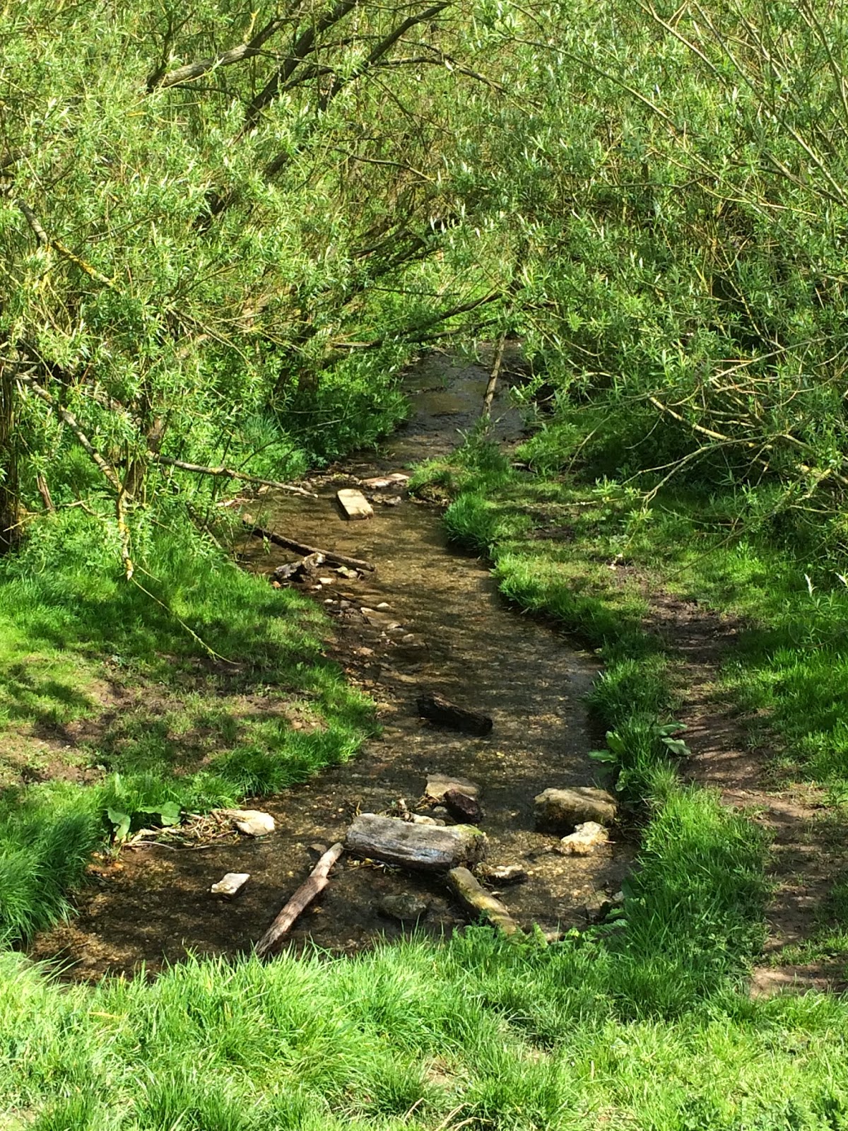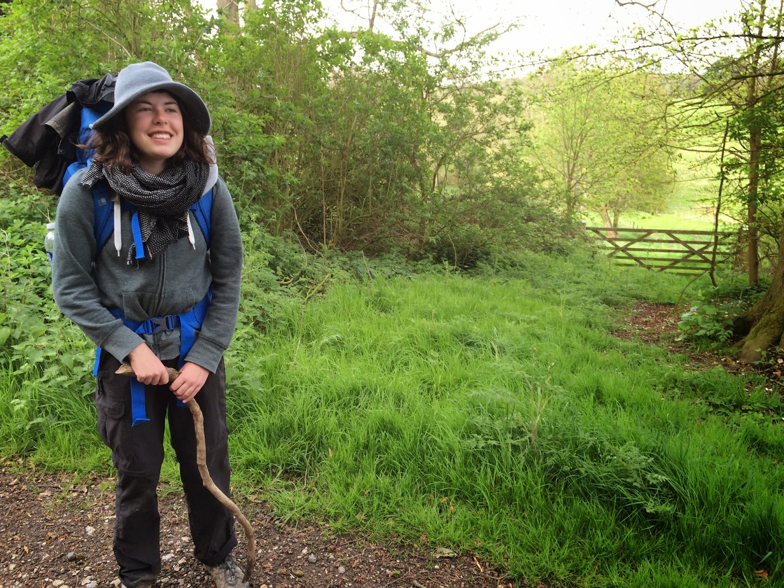 In the pub over a late Sunday lunch we decided on another taxi hop, this time to Londesborough. It took a while to get a taxi – four different phone numbers – but eventually a jolly retired gentleman turned up to take us on our way. Poppy had by this time acquired a stick which she put into the car boot along with our rucksacks. The driver laughed – ‘What’s that for?’ he said, ‘catching rabbits?’ The drive was through a beautiful pastoral landscape which commanded huge views across the countryside. Our driver proudly told us that on a good day you could see York Minster as well as three smoking power stations, which he pointed out and named for us – Drax, Eggborough and Ferrybridge. Then he pointed to some wind turbines on the hill, white against the green and yellow, like the chalk beneath. ‘Those things are just unsightly,’ he said.