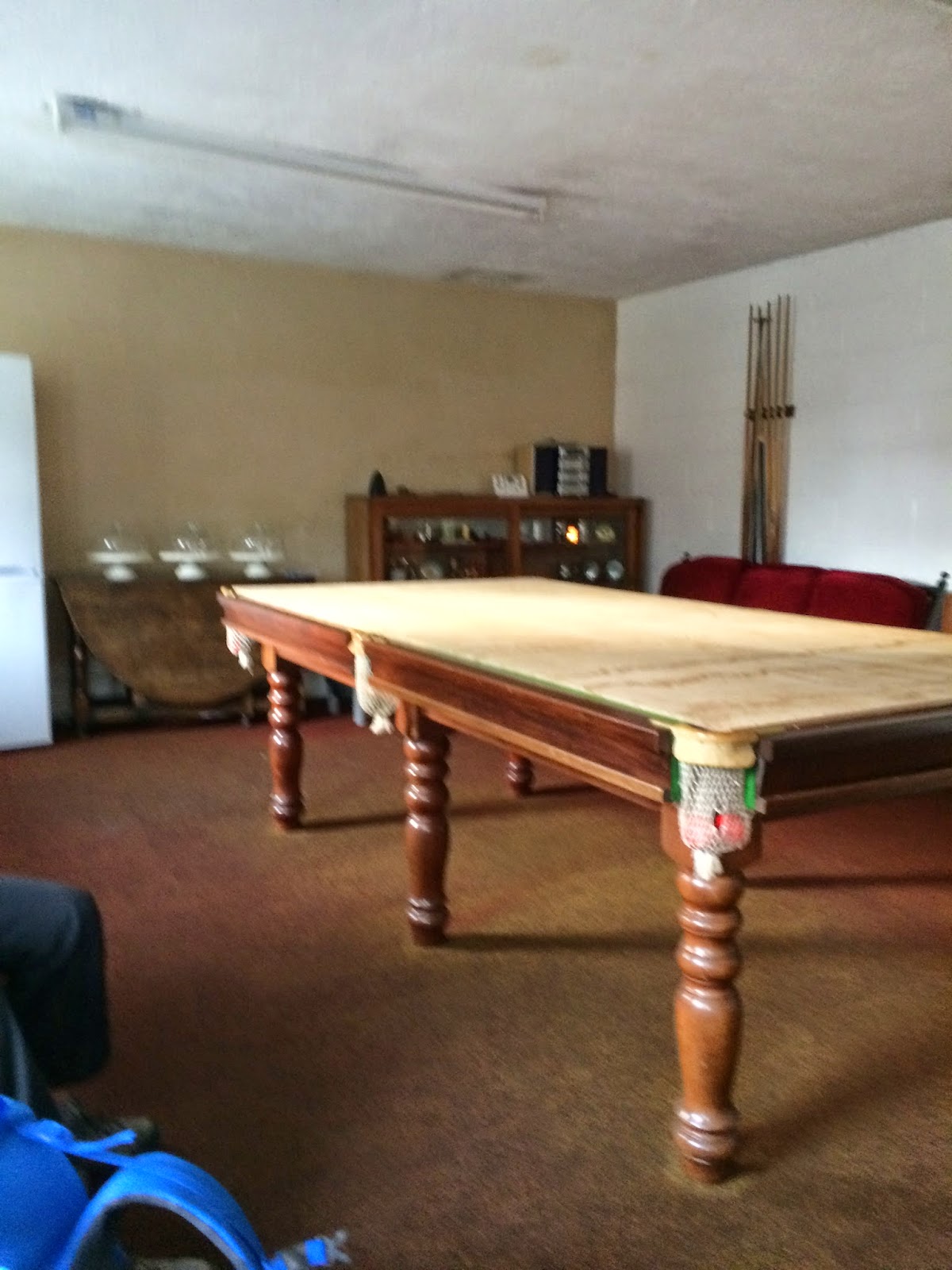village, a few hundred yards walk away. They couldn’t have toilets in the actual field, the owner explained, as the neighbours were worried about gypsies. She unlocked a room next to the toilet block, or rather a hall. It was like the games room at a residential centre for school trips. It had a pool table, about 40 fold up chairs, trestle tables, an exercise bike, a fridge, sink, cooker, the Goodmanham Village Emergency Plan and a cabinet of trophies won for racing driving. Some people prefer to stay in here, the lady told us, and not bother putting their tent up.