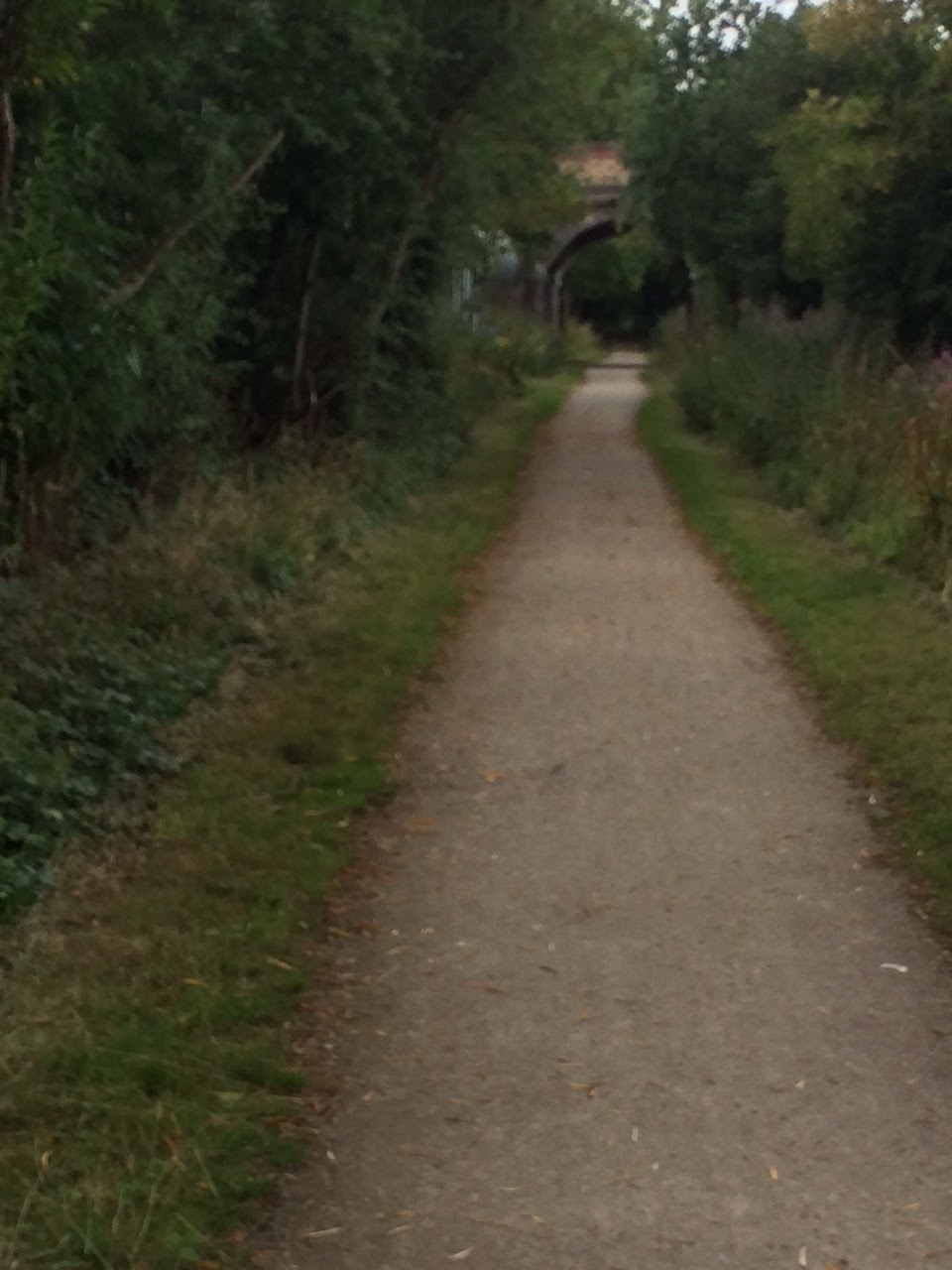 Most of the walk was along a disused railway which was decorated with artworks, and ridden along by families of cyclists.
