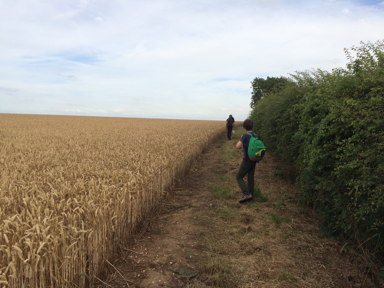 The path became less botanically interesting. We walked along the edges of fields full of wheat, barley, rape, more wheat, stretching as far as the eyes could see. The golden colour against the sky was a joy to behold, for a minute or two anyway. After mile after mile after mile it kind of lost its appeal.